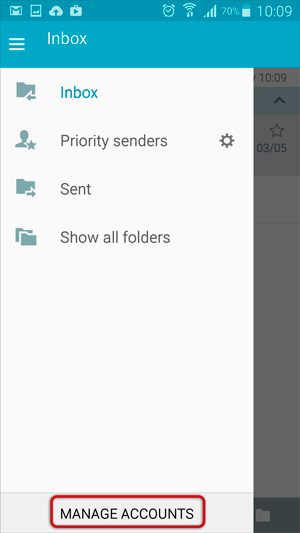 b. From your Inbox, select Manage Accounts