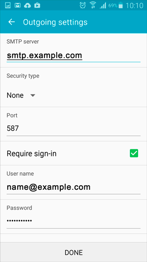 and then select Done to save the account settings: