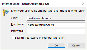 - Incoming mail: add mail. before your domain name e.g. mail.example.co.za