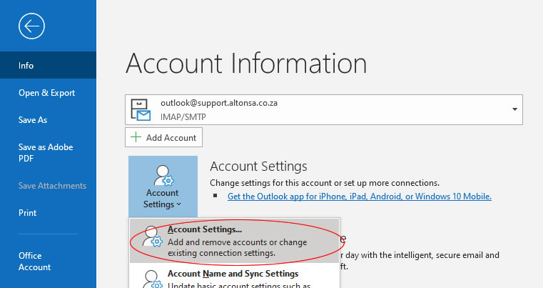 - Select the Add Account button in the middle of the screen, then Account Settings